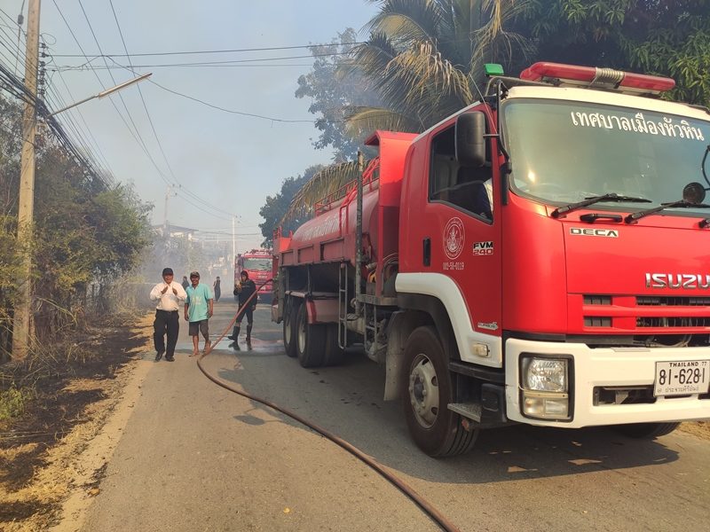 นายจีรวัฒน์ พราหมณี ปลัดเทศบาลเมืองหัวหิน ได้เดินทางลงพื้นที่ พร้อมอำนวยการดับเพลิง เจ้าหน้าที่ดับเพลิงเทศบาลเมืองหัวหิน ได้ระดมรถบรรทุกน้ำเข้าฉีดสกัดเพลิงจำนวนเกือบ 10 คัน ตำรวจ สภ.หัวหิน ต้องปิดการจราจรชั่วคราว ไม่ให้รถทุกชนิดผ่านเส้นทาง เนื่องจากเปลวไฟอาจจะเปลี่ยนทิศทาง เป็นอันตรายกับประชาชนประกอบกับมีควันไฟฟุ้งมองไม่เห็นเส้นทาง การดับเพลิงเป็นไปอย่างยากลำบาก เนื่องจากมีเชื้อเพลิงเป็นเศษซากกิ่งไม้ ใบไม้ มีการประทุขึ้นใหม่อยู่ตลอดเวลา ประกอบกับเป็นพื้นที่ป่า รกต้องเดินเท้าเข้าไปฉีดน้ำสกัดเพลิง ใช้เวลานานกว่า 1 ชั่วโมงเพลิงจึงสงบ