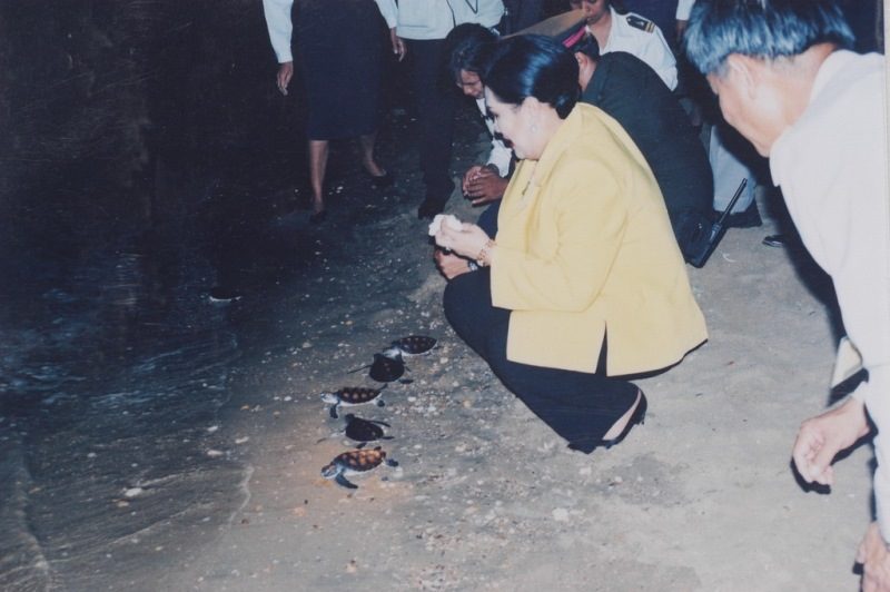 จากข้อมูลที่บันทึกไว้ทำให้ทราบว่าเมื่อวันที 17 สิงหาคม พ.ศ.2543สมเด็จพระนางเจ้าสิริกิติ์พระบรมราชินีนาถ พระบรมราชชนนีพันปีหลวง เสด็จพระราชดำเนินพื้นที่โครงการพัฒนาป่าไม้ปากน้ำปราณบุรี อันเนื่องมาจากพระราชดำริ ทรงปล่อยเต่าทะเลบริเวณชายหาดวนอุทยานปราณบุรี จำนวน 81 ตัว(ซึ่งเป็นลูกเต่าตนุ)