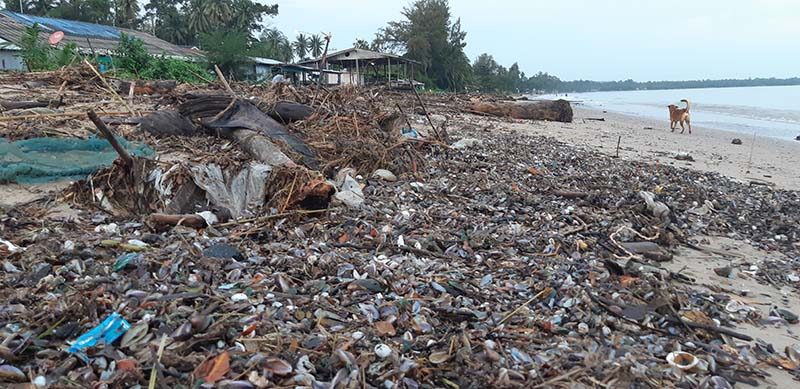 ชาวบ้าน และเด็กๆในหมู่บ้านปากคลอง บอกว่าเหตุการณ์น้ำท่วมครั้งนี้ ส่งผลให้มีขยะจำนวนมากถูกน้ำป่าพัดลงสู่ทะเลจนกระทั่งถูกคลื่นซัดกลับขึ้นมาเกยตลอดแนวชายหาดเหมือนเหตุการณ์น้ำท่วมเมื่อปี2560 จึงอยากให้หน่วยงานที่เกี่ยวข้องเข้ามาดำเนินการจัดเก็บขยะทั้งหมดออกจากชายหาดเพื่อไม่ให้เกิดผลกระทบต่อสิ่งแวดล้อมและภาพลักษณ์ของการท่องเที่ยว เนื่องจากขณะนี้มีซากหอยจำนวนมากที่ถูกคลื่นทะเลซัดขึ้นมาได้เริ่มส่งกลิ่นเหม็นไปทั่ว ซึ่งหากปล่อยทิ้งไว้หลายวันก็จะทำให้ชายหาดแห่งนี้เกิดความสกปรก