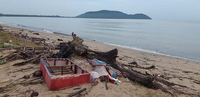จากชายหาดที่สามารถลงไปเดินเล่นริมชายหาดได้ วันนี้สภาพของชายหาดที่นี่กลับถูกปกคลุมไปด้วยเศษขยะ จำนวนมากไม่น้อยกว่า 50 ตันเป็นระยะทางยาวกว่า 5 กิโลเมตร ส่วนใหญ่เป็นซากเศษไม้ ต้นไม้ ลูกมะพร้าว รวมทั้งกล่องโฟม และพลาสติก ซึ่งถูกคลื่นซัดขึ้นมาเกยที่ชายหาดแม่รำพึงในช่วงที่มีฝนตกหนัก ส่งผลให้เกิดน้ำป่าจากเทือกเขาตะนาวศรีไหลหลากเข้าท่วมพื้นที่ในอำเภอบางสะพาน และ อำเภอบางสะพานน้อย ระหว่างวันที่ 8-10 พ.ย.2561 ที่ผ่านมา