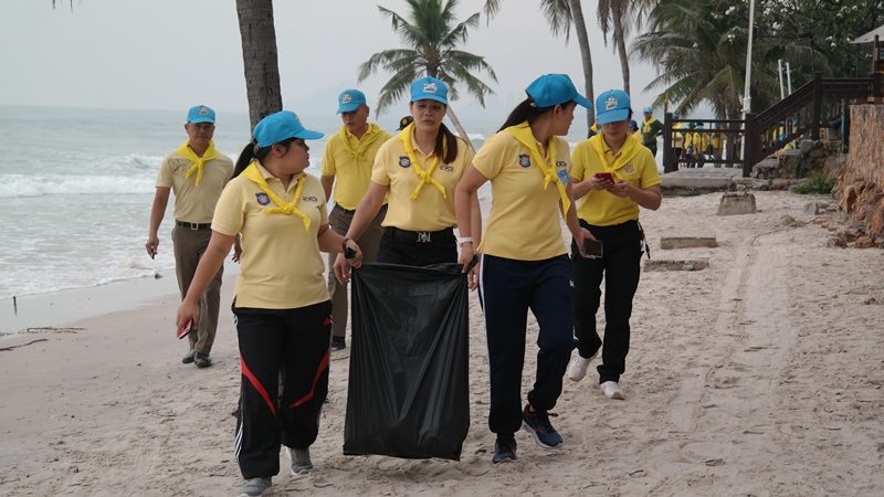 จิตอาสาร่วมพัฒนาคืนความสวยงาม”หาดหัวหิน”หลังพายุปาบึกสงบ