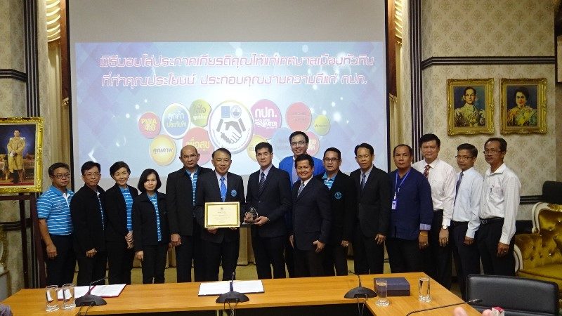 กปภ.มอบโล่ประกาศเกียรติคุณให้”เทศบาลเมืองหัวหิน”