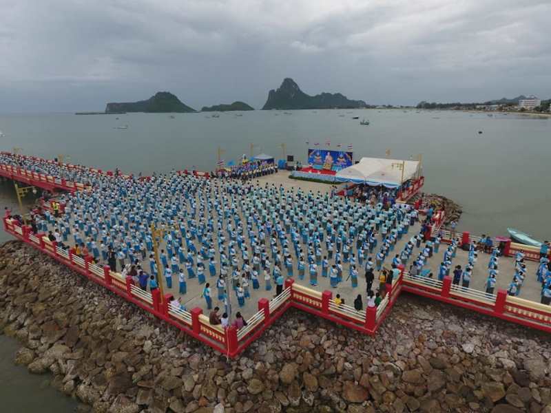 วันที่ 6 สิงหาคม 2562 ที่สะพานสราญวิถี หน้าอ่าวประจวบ อ.เมืองประจวบคีรีขันธ์ นางรำรุ่นใหญ่จาก 8 อำเภอทั่วจังหวัดประจวบคีรีขันธ์ จำนวน 4,000 คน ร่วมรำเทิดพระเกียรติ สมเด็จพระนางเจ้าสิริกิติ์ พระบรมราชินีนาถ พระบรมราชชนนีพันปีหลวง เนื่องในโอกาสวันเฉลิมพระชนพรรษา 87 พรรษา 12 สิงหาคม 2562 จัดโดยสำนักงานพัฒนาชุมชนจังหวัดประจวบคีรีขันธ์ โดยมีนายพัลลภ สิงหเสนี ผู้ว่าราชการจังหวัดประจวบคีรีขันธ์ ,นางนิศากร สิงหเสนี นายกเหล่ากาชาดจังหวัดประจวบคีรีขันธ์ เป็นประธาน พร้อมด้วย นางยุพิน เศรษฐศักดาศิริ พัฒนาการจังหวัดประจวบคีรีขันธ์ แลหัวหน้าส่วนราชการ ร่วมพิธีซึ่งเป็นกิจกรรมรวมพลังสตรีจังหวัดประจวบคีรีขันธ์ เนื่องในวันสตรีไทย โดยนางรำทุกคนแต่งกายในชุดผ้าถุงสีฟ้าลายดอก เสื้อลายลูกไม้สีขาว สไบสีฟ้า และรองเท้าหุ้มส้น อย่างพร้อมเพรียง รำในเพลง ราชินีศรีแผ่นดิน เพลงประจวบคีรีขันธ์ และเพลงรักริงโง ท่ามกลางบรรยายกาศท้องฟ้าครึ้มมีฝนประปราย ซึ่งถือเป็นการรวมตัวครั้งยิ่งใหญ่ที่มีกลุ่มสตรีมากที่สุดในจังหวัด เพื่อเปิดโอกาสให้หญิงไทยออกมาทำกิจกรรมร่วมกัน แสดงถึงบทบาทของสตรีไทยในสังคม ในฐานะของการเป็นแม่ที่ดีของลูก เป็นภรรยาที่ดีของสามี และเป็นแม่ศรีเรือนที่ดี